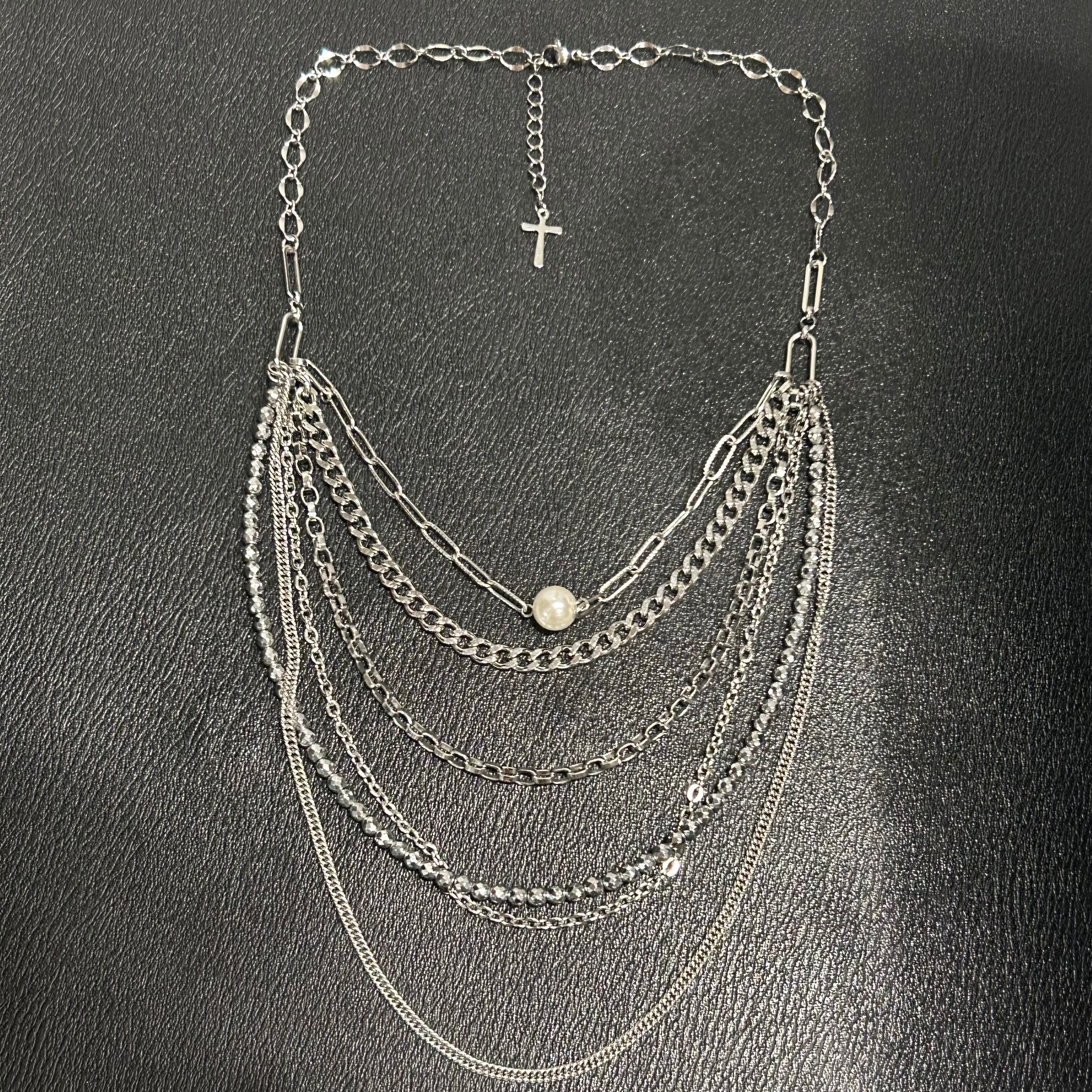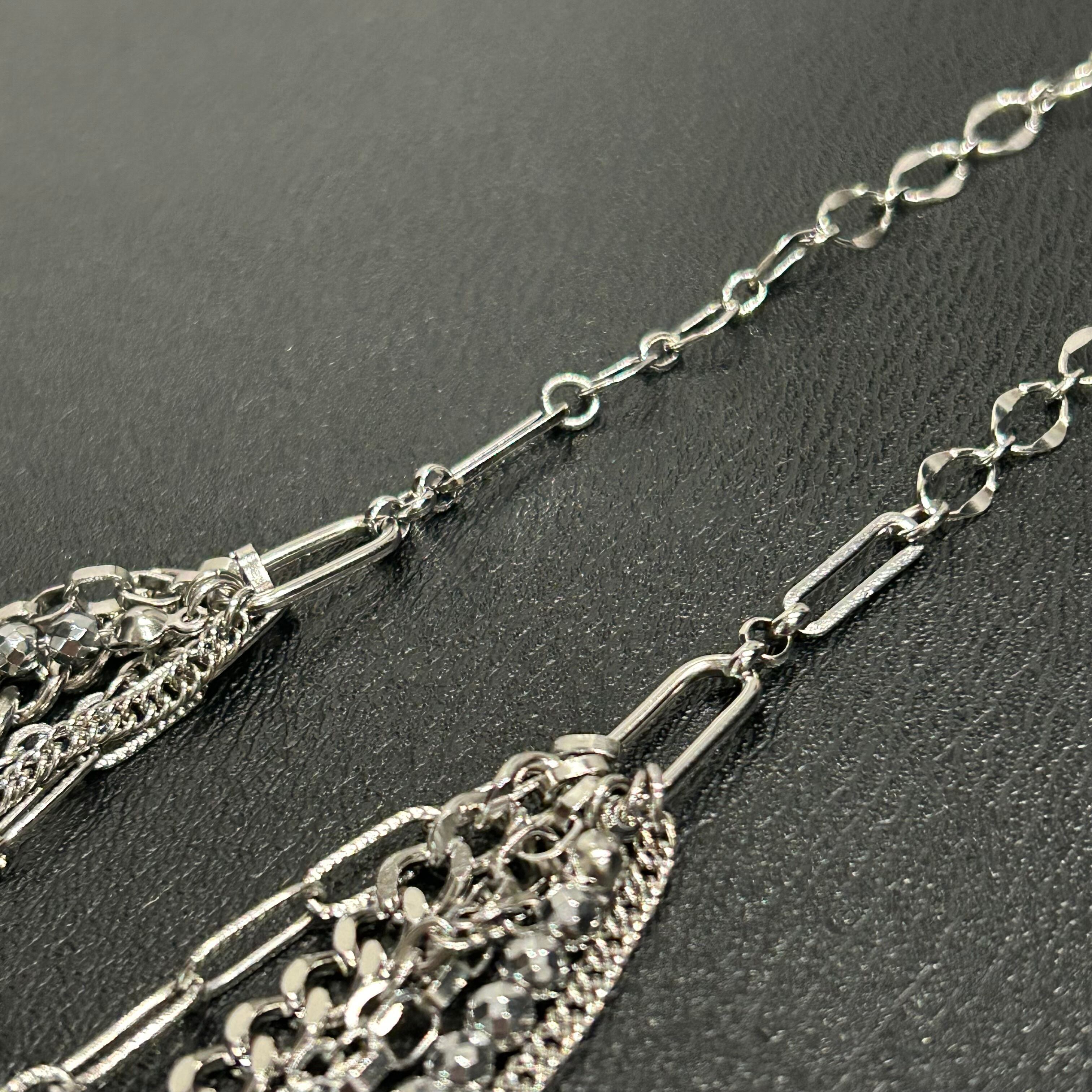 多重チェーンと天然石をふんだんに使用した豪華な仕上がりのネックレス。こちらは一点物になります。