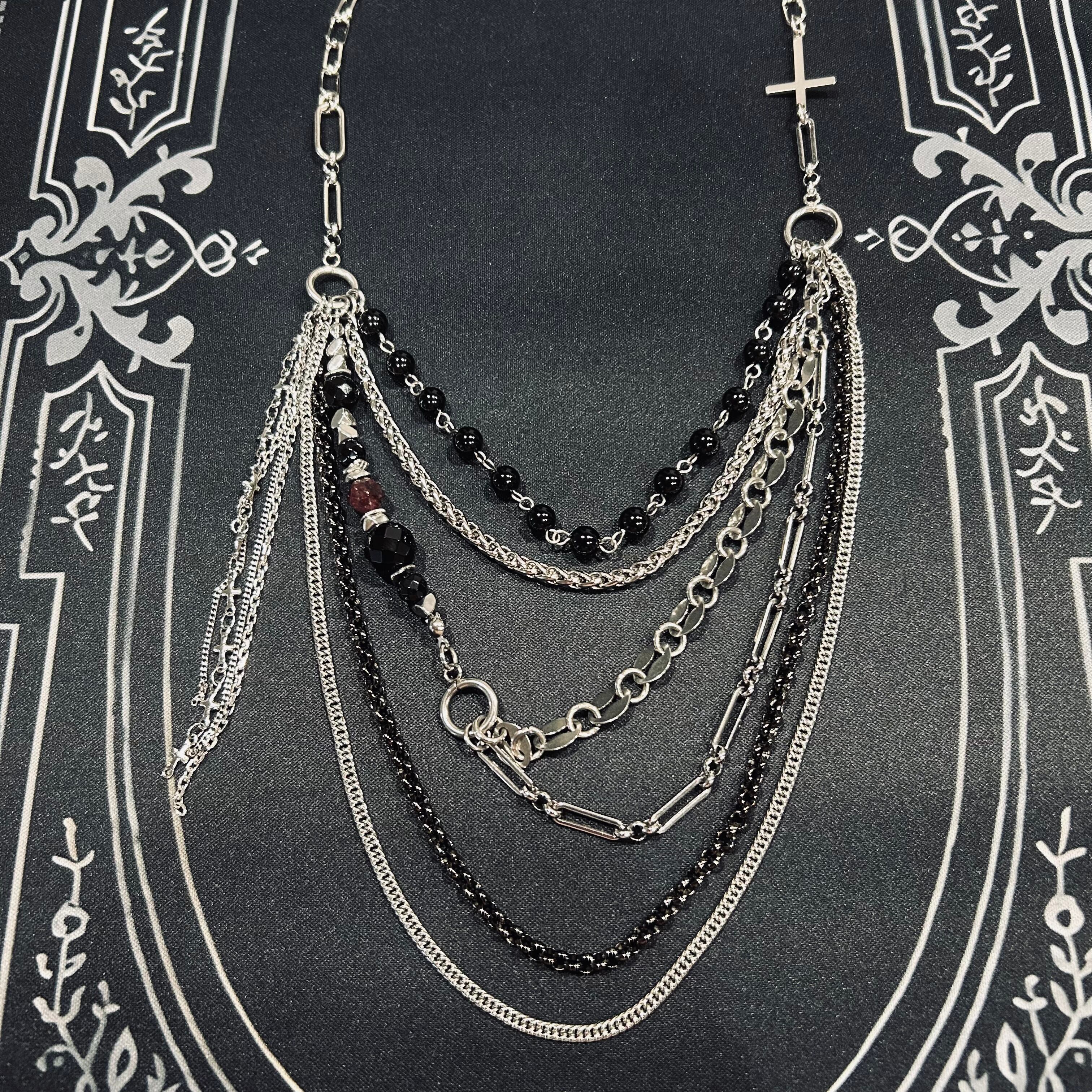 多重チェーンと天然石をふんだんに使用した豪華な仕上がりのネックレス。こちらは一点物になります。